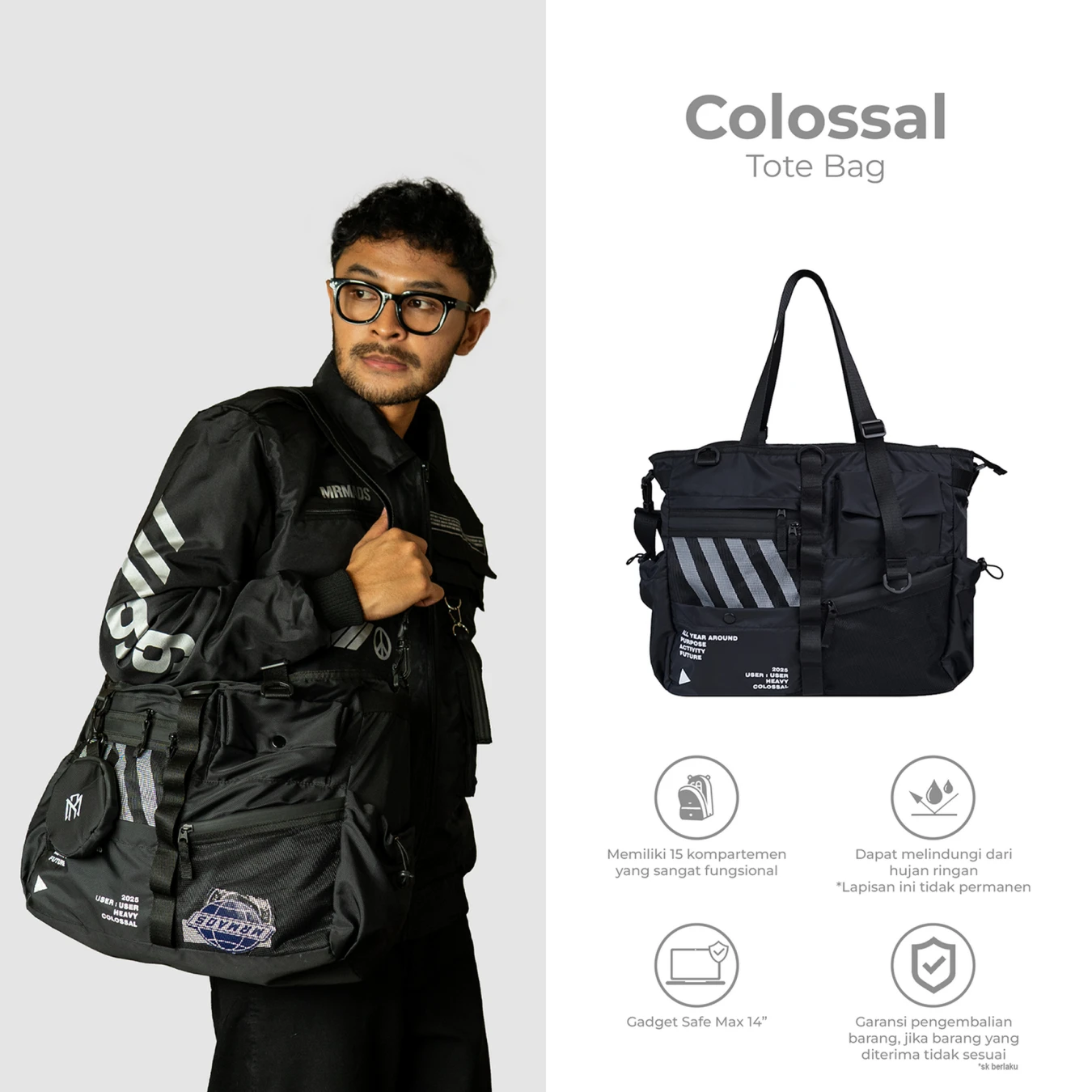 Colossal Tote Bag dibuat buat ritme harian yang padat kerja, meeting, after office tanpa perlu bongkar tas cari barang.