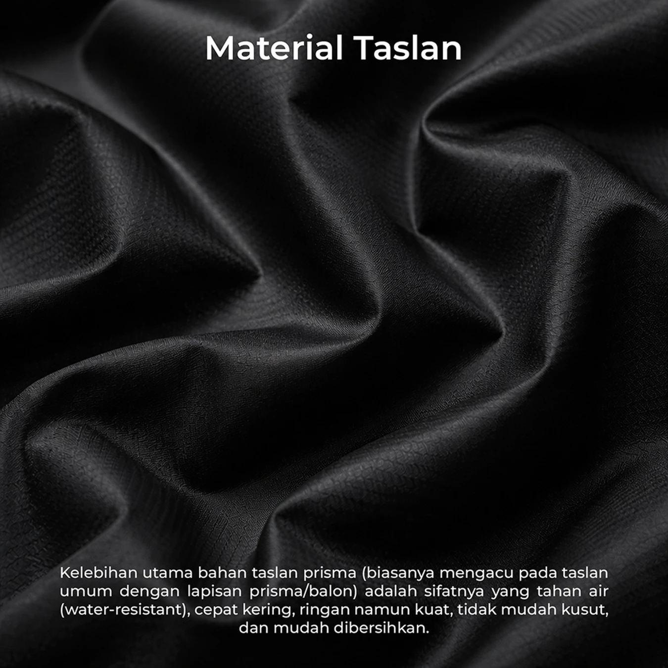 Material Taslan water-repellent: kuat, tahan cipratan, siap cuaca apa pun.